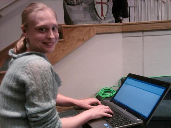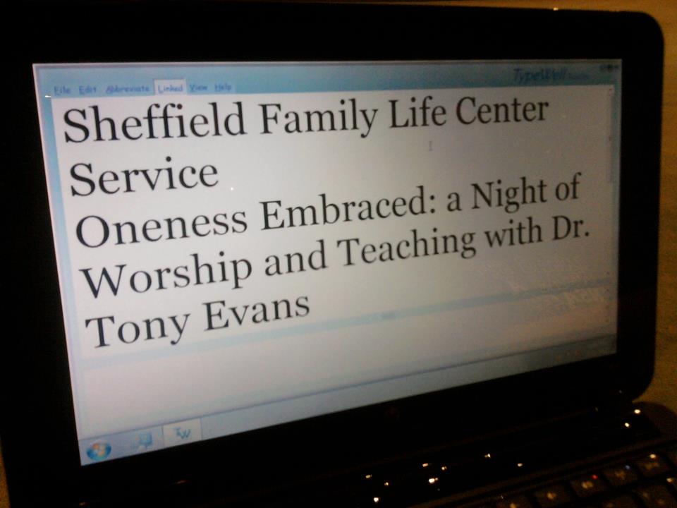 My friend from church, Melany, and I volunteered to perform three worship songs in sign language at Dr. Evans’ event. “America the Beautiful” was one of them—a tribute to the revival’s challenge of uniting Americans of every color to spread the word of God. My friend and I practiced the song and knew the signs by heart. With less than 24 hours to go ’til the revival, I was less sure I would understand the rest of the event. Attempts to seek out volunteer captioning typists had failed. Captioning is my lifeline when it comes to understanding speech at live events. Without it, I feel lost.