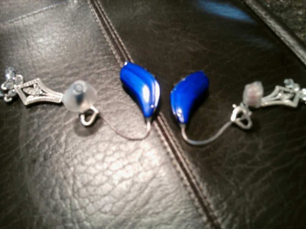 I wore Starkey Destiny open fit hearing aids from 2008-2012. Here they are decorated with charms from Hayleigh’s Cherished Charms.
