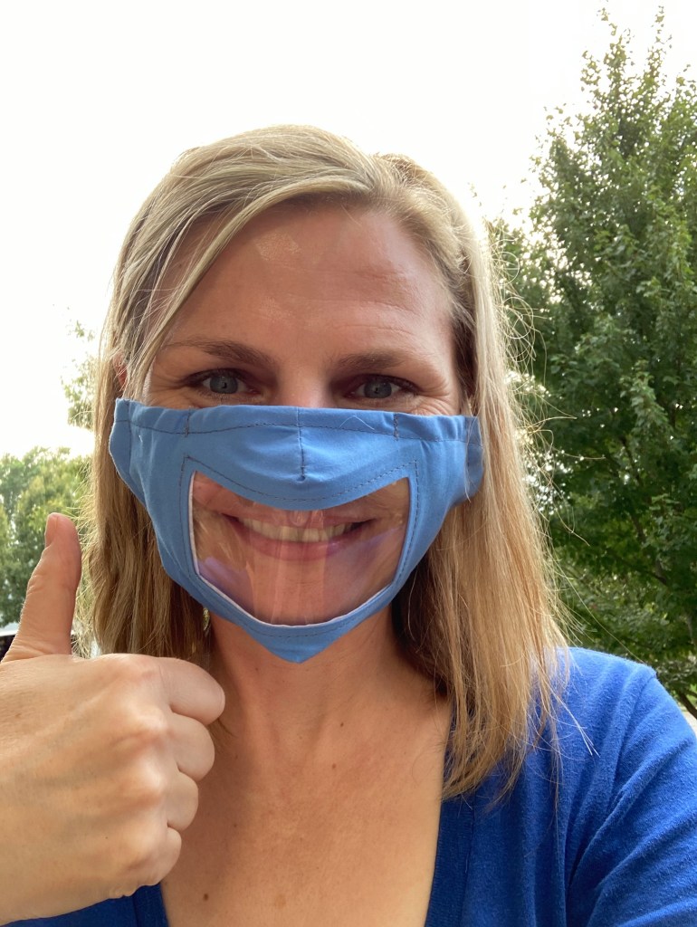 Cheesy smile aside, the clear mask makes for easier lip-reading conversations. Cooler yet, the lady who made this mask donated half of all profits to organizations benefitting the Deaf and hard of hearing. Rock on!