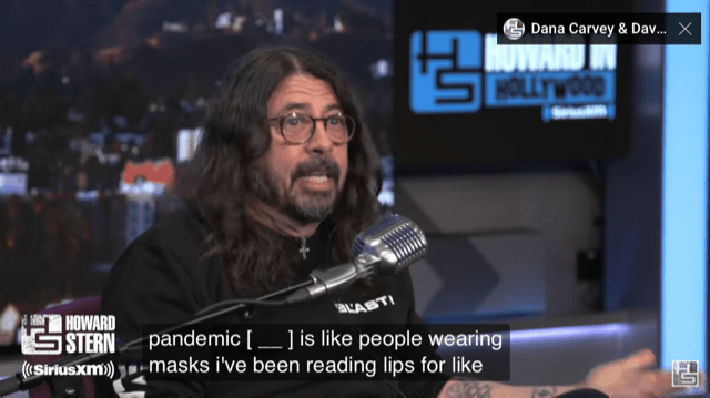 The Foo Fighters is possibly the greatest rock band since The Rolling Stones and The Beatles (at least Lipreading Mom thinks so). I am currently reading through band leader Dave Grohl’s memoir, The Storyteller, and one thing I can tell you about Dave’s life is this: It’s been a LOUD ride. Being at the top of his music game for 25 years hasn’t made this rockstar immune from the fun stuff that Lipreading Mom daily lives with: hearing loss and tinnitus. During a recent interview with Howard Stern, Dave shares about his hearing issues and constant ear ringing, including how he has been reading lips for two decades. That changed during the Covid era and plethora of face masks.