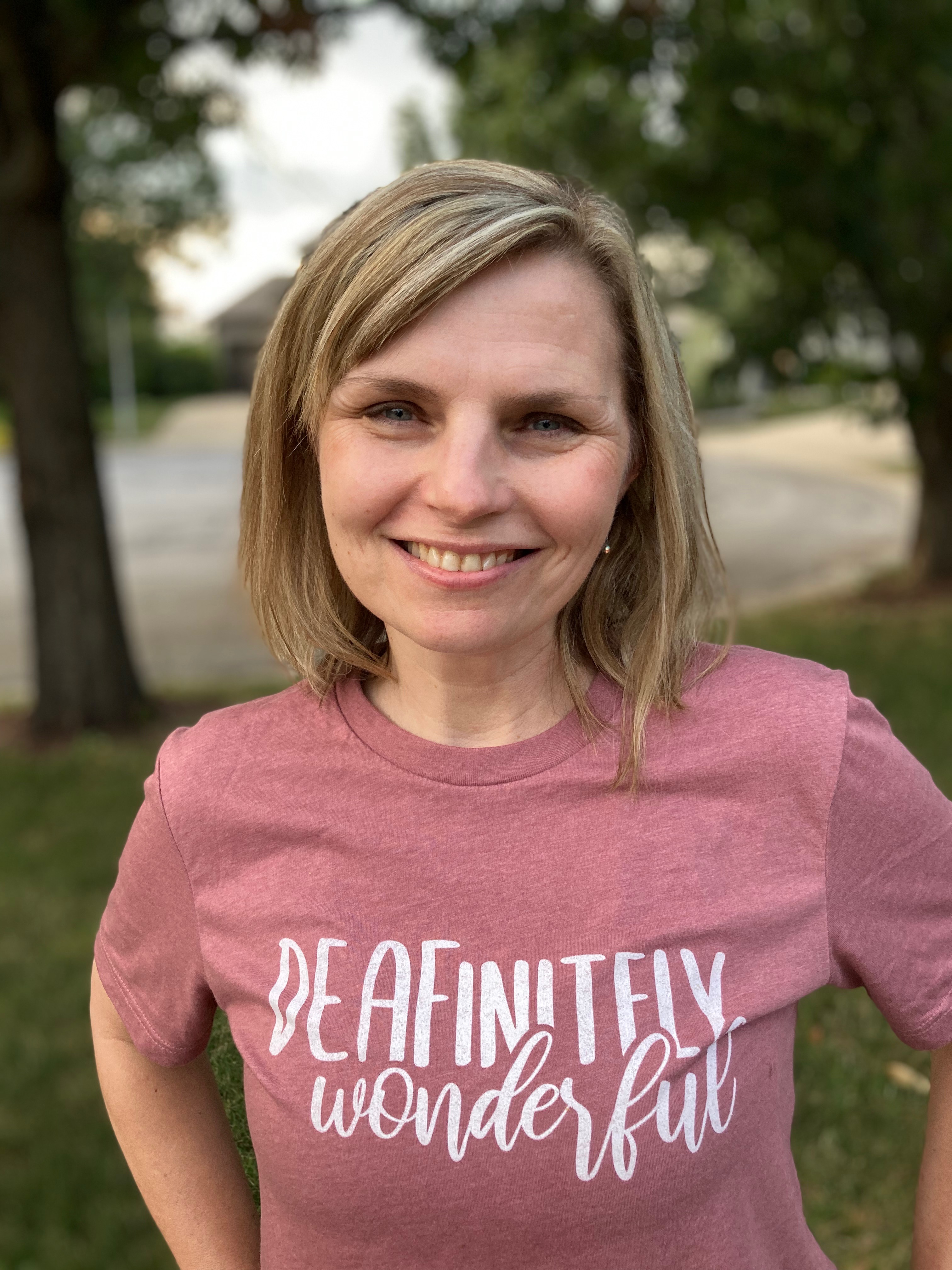 At the movie, I wore a mauve shirt from the Etsy seller DEAFinitelywonderful. On the shirt are the words “Deafinitely Wonderful “.