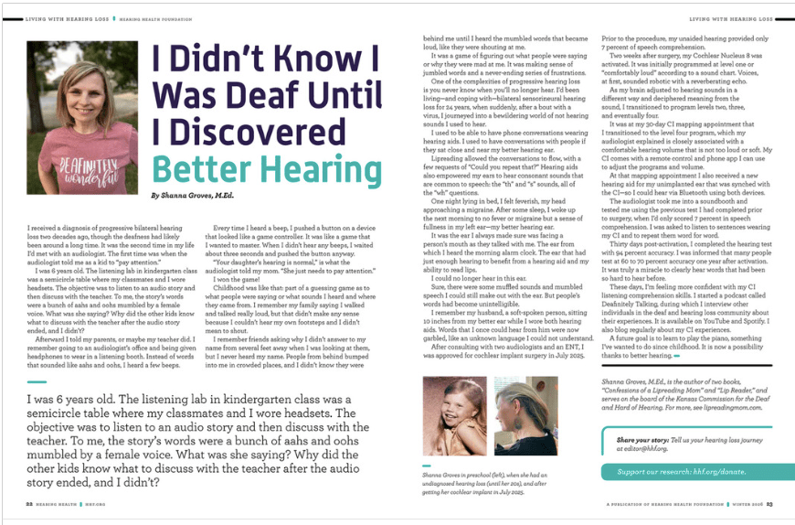 Hearing Health magazine recently published my article “I Didn’t Know I Was Deaf Until I Discovered Better Hearing” in the Winter 2026 issue. I am also including the article below for you to read here.