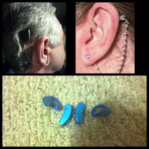 image Published at 300 × 300 in Show Me Your Ears « Previous Next » Gary and Sue Gnat show off their ears: Gary’s BAHA (bone-anchored hearing aid), top left; and Sue’s Phonak Audeo hearing aids, top right. The new blue hearing aids at the bottom are worn by Aaron Nazelrod. Lipreading Mom loves your style! Like Loading...