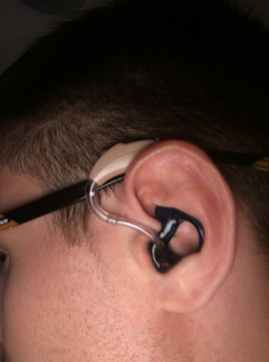 image1 Published at 1920 × 2576 in Show Me Your Ears « Previous Next » Markie Hickman, age 24, has been deaf since birth with single-sided deafness and tinnitus. Markie’s hearing aid is the Phonak Cros and has worn it since 2013. Lipreading Mom likes the hearing aid’s dark ear mold. Like Loading...